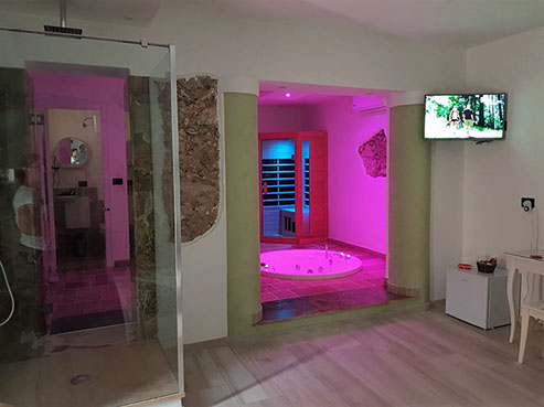 La struttura di nuova apertura è caratterizzata dalle sue grandi suite con vasca idro, sauna in stanza e caminetto. Il tutto è rifinito con delle decorazioni in Marmo e Pietra.